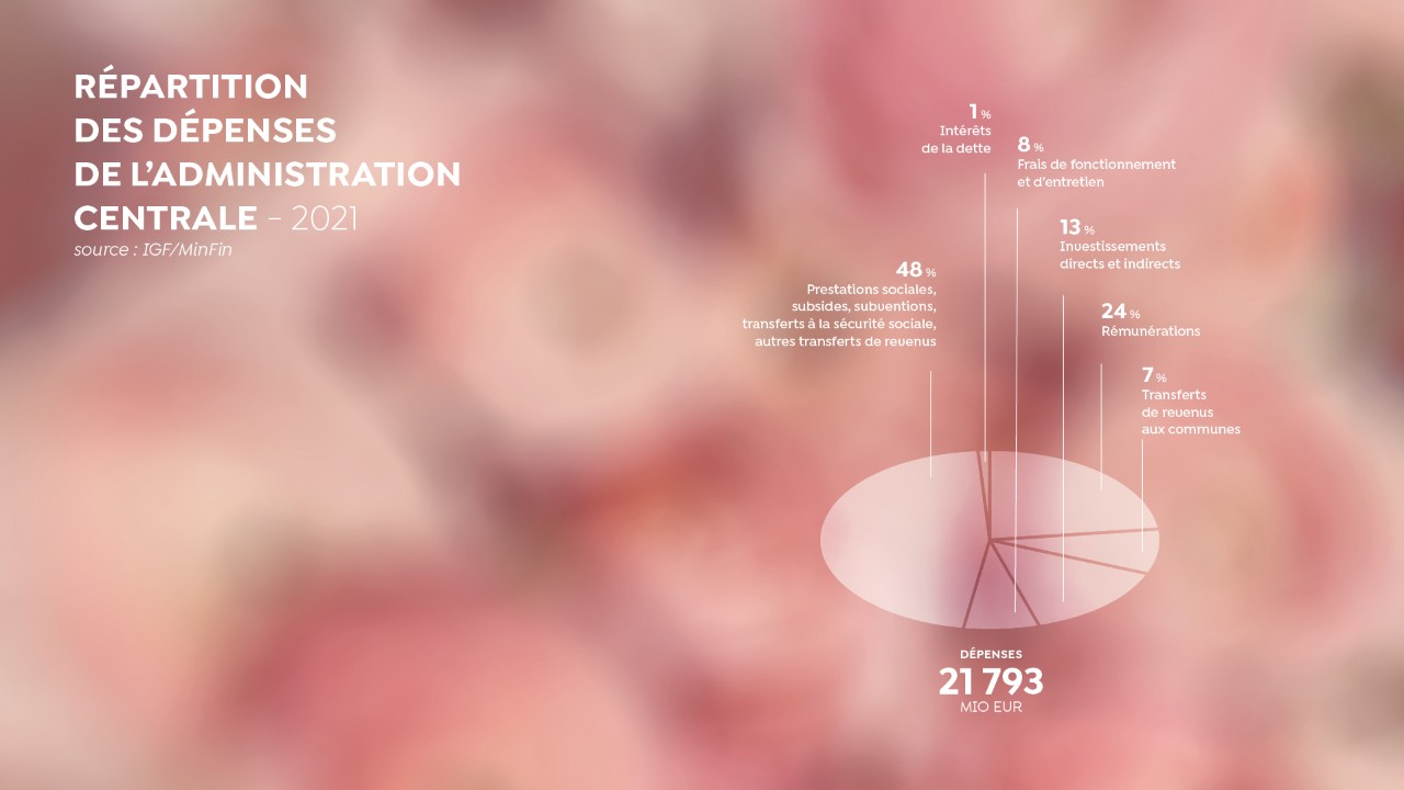 · 48% fir d’Sozialleeschtungen, Subsiden a Subventiounen fléissen.