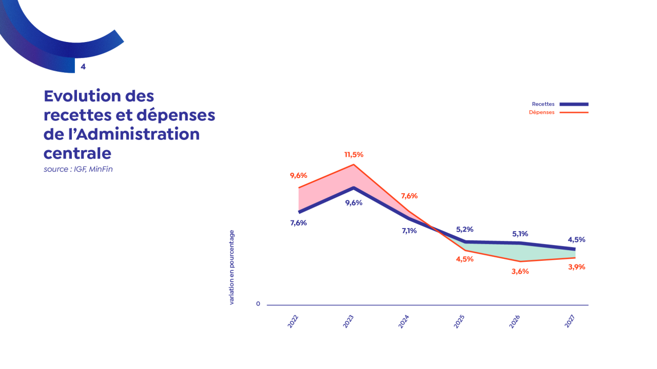 Dës Regierung stellt den Index net a Fro. - 13% vun den Ausgaben vum Zentralstaat si fir Investitioune virgesinn. Dat wiere 4,4% vum BIP (am Verglach : 4,2% am Joer 2023).